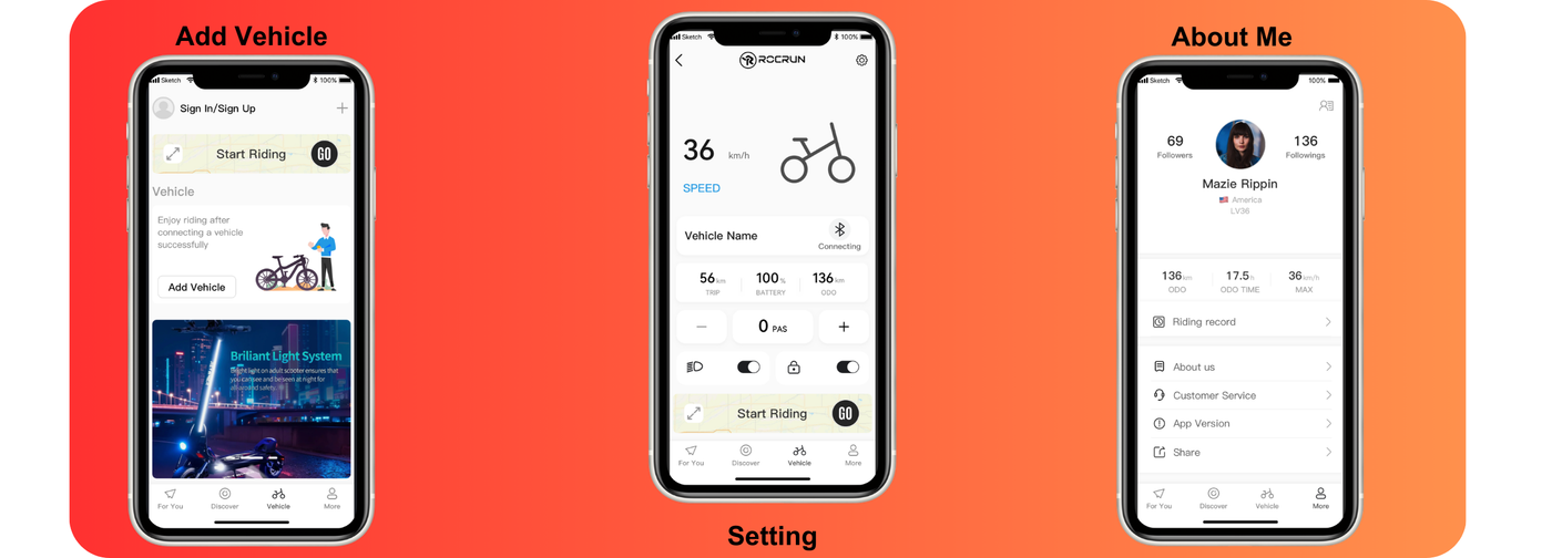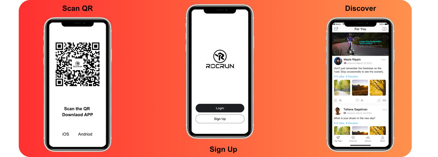 The ROCRUN App lets you connect your phone to your ROCRUN electric scooter. You can check speed, battery level, and mileage in real time, adjust settings, and view your ride history. It makes riding smarter, easier, and more convenient. Download it .